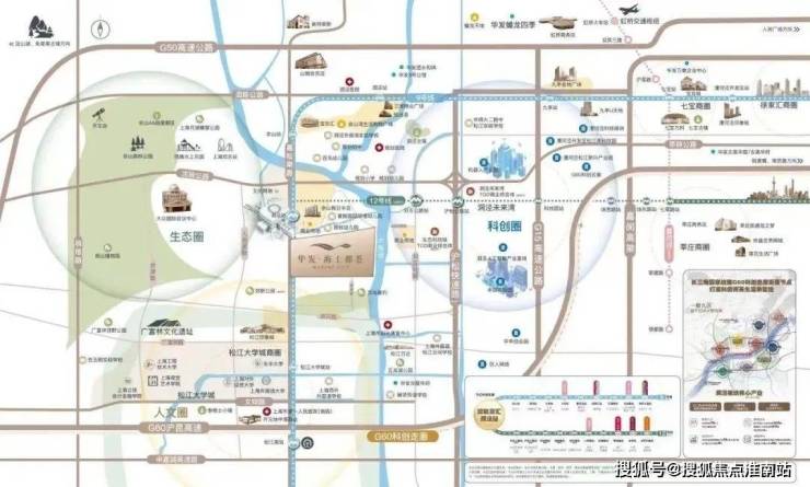 G60 科创走廊(直线距离约 2.5km)、长三角 G60 浙江科创基地(直线距离约 3km)等国家级产业集群环伺,产城融合驱动区域价值裂变。