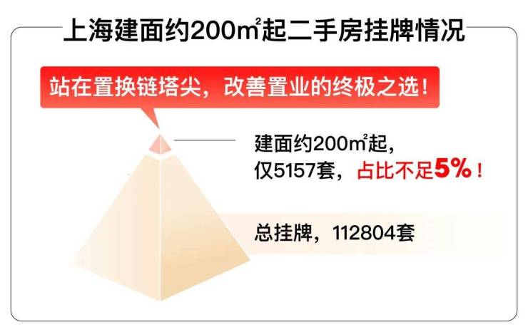 据链家数据显示,全市建面约200㎡起的改善产品,站在置换链的塔尖,仅有5157套挂牌,占比不足5%,臻稀程度不言而喻。