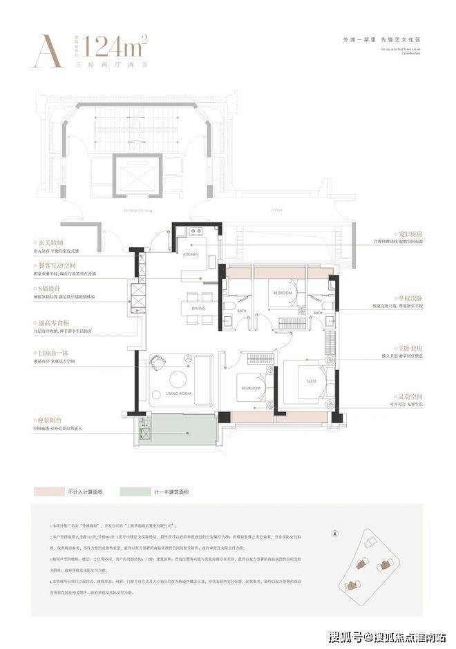 建面约124㎡3房: