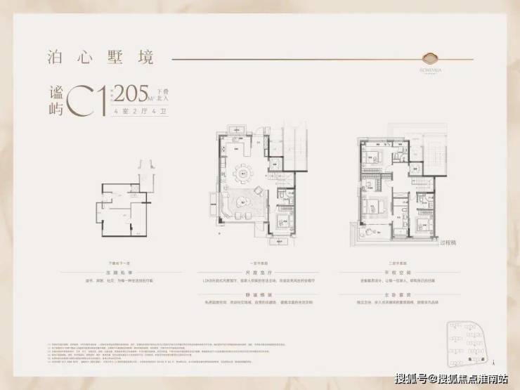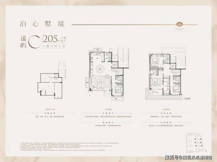 建面约216㎡上叠:三层全套房卧室设计,客餐厅位于视野更好的四层