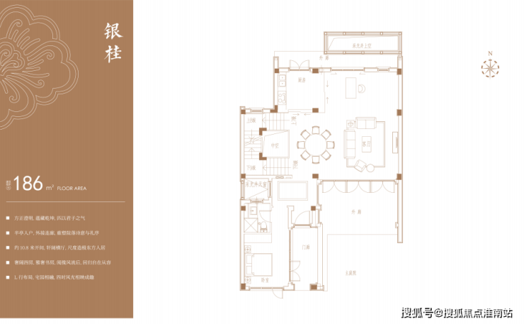 房屋实际可用面积要比户型图标注面积大一些,以“丹桂”户型为例,户型图标注的建筑面积为185m²,但是层高最高处可达到9.9米,未来完全可以搭建二层,搭建后,地上使用面积可以达到约280m²左右;