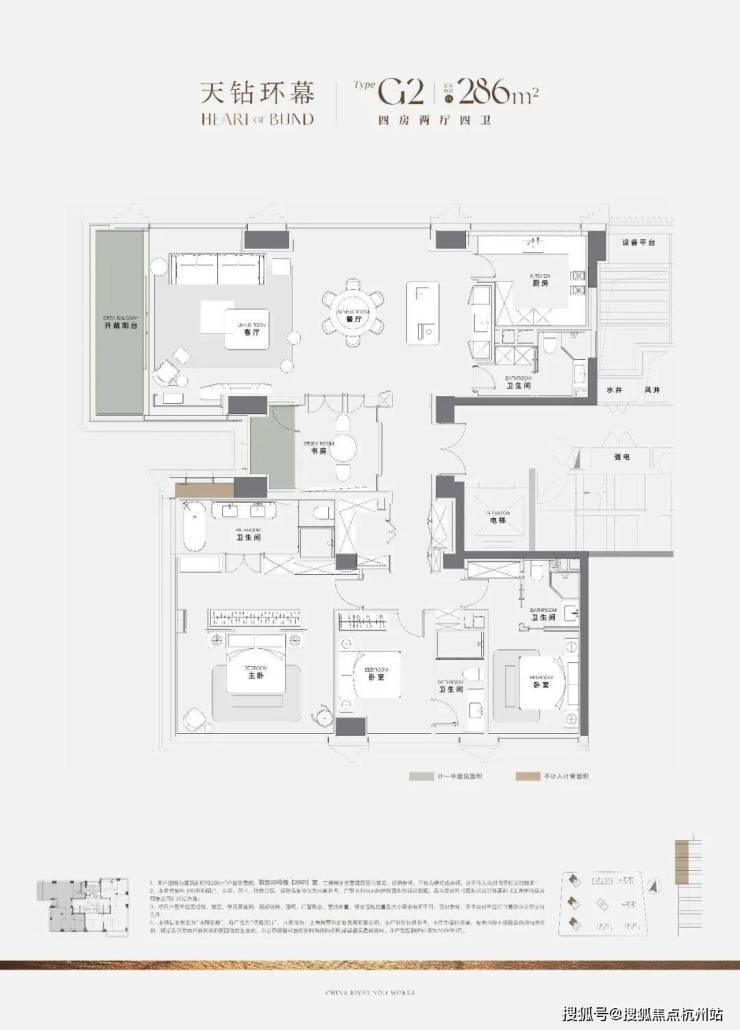 四居:建面约226㎡(G1户型)、245㎡(F户型)、286㎡(G2户型)