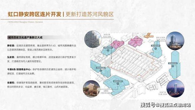 弘安里的北侧的静安里,上海静安里,汲取新天地、张园等城市节点级风貌商业精髓,精心规划沿武进路历史风貌商业街区,展示体验在地文化,打造高端零售、高档餐饮、文化展览等丰富业态的商业格局,再融入弘安里和静安里的成片风貌区,未来这里将成为上海的新里天地!东侧的18街坊,就是崇邦集团商办综合体。总建筑面积达29万㎡,其中包括约11万㎡的新建商业设施,10万㎡的超高层办公楼,目前已投入使用。西侧则是安康苑和龙盛湾上打造的超高层住宅和高能级商业。