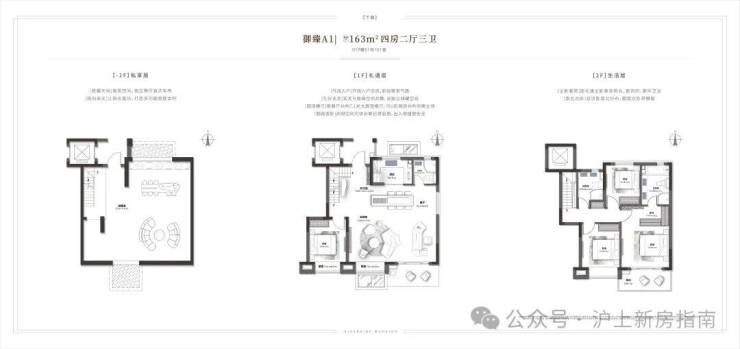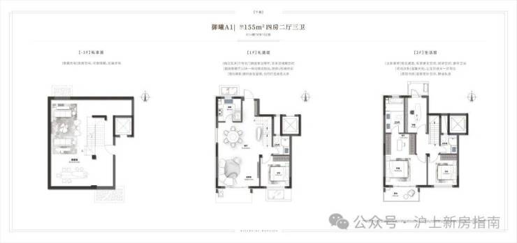 155–168㎡四房两厅三卫改善型叠墅:总价约396–488万,下叠配5.2米挑高地下室,可改家庭影院/健身房;上叠享星空露台,视野开阔