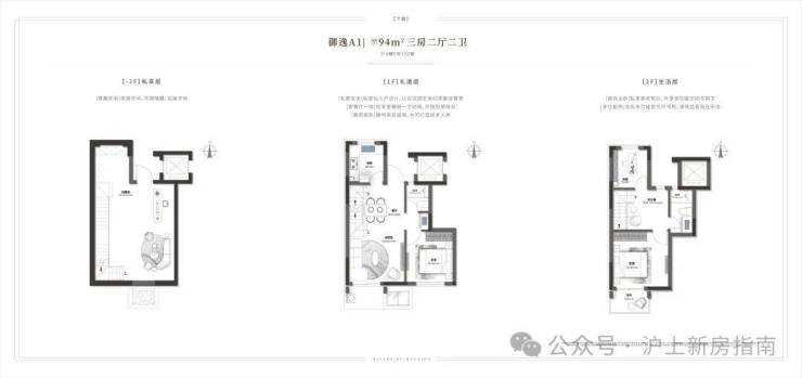 94–95㎡三房两厅两卫叠墅(下叠/上叠):总价约202–278万,带庭院或露台,实现墅居梦想