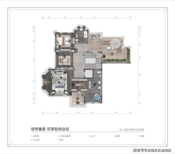 约639㎡主力户型:5室3厅,动静分区明显,居住舒适度高;
