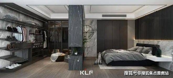 赋予居室大气、优美的空间感玻璃衣帽间的填充,丰富了主卧的功能性