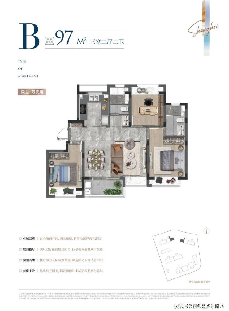 「森兰·万安境」整盘164套房源一次性入市,共包含建面约97㎡轻奢3房、建面约124㎡改善4房。