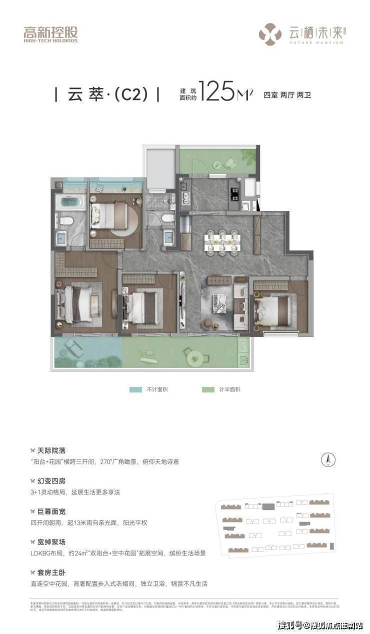 高实得率改善精装四房主城难得约125-165㎡全四房改善洋房,以洋房高得房率为基底,叠享空中花园+飘窗(全赠送)、南北双阳台(半赠送)等多维不计容空间,以最高超100%有效空间增值,重新定义改善型居住标准。