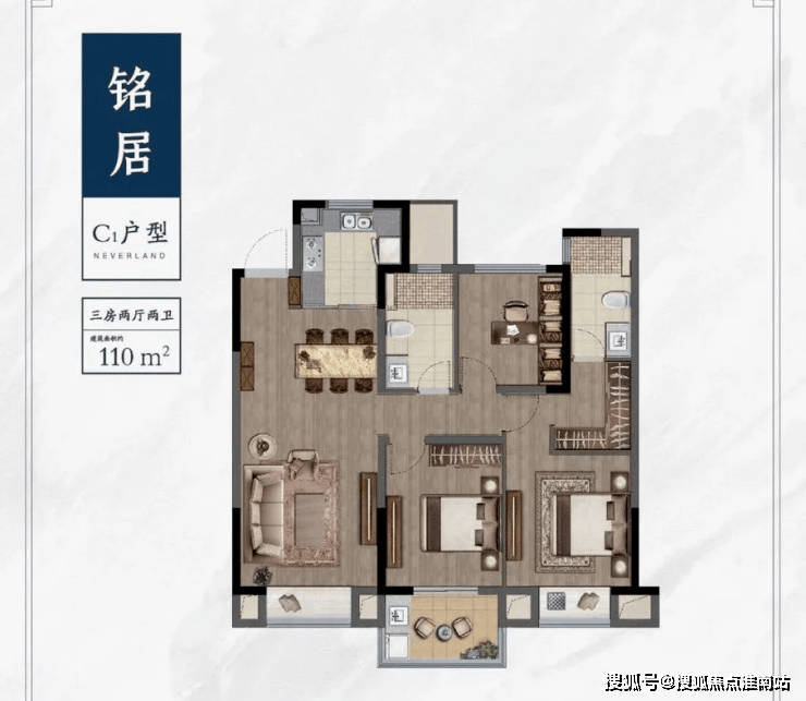 97㎡三房两厅两卫(总价约185万起)
