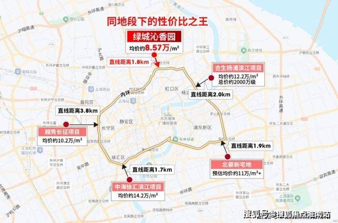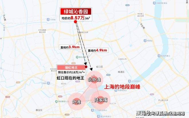 其次,项目距离预计约18万+的瑞虹地王直线约3.9km、距离北外滩直线约4.9km,几乎就是一脚油门就能抵达的存在.
