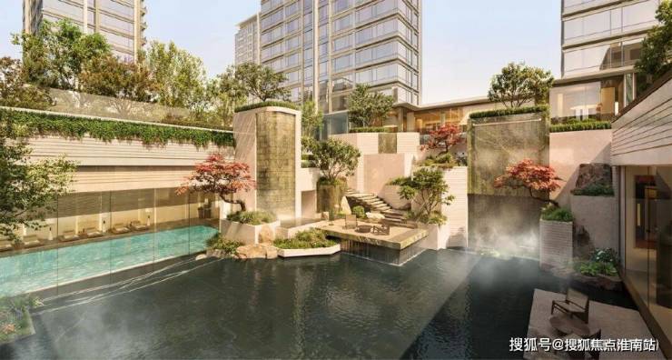 悬浮于城市上空的生活美学岛屿,悬浮绿洲、门厅飞瀑开场,入境“一轴七岛十一境”的超级立体庭园。七大主题岛屿,连岛成洲,构建浮岛庭园洄游动线。园中下沉庭院、戏水池、镜面水院等等让园景层次丰富、无限变幻,呈现岛的风景“发现”之旅。