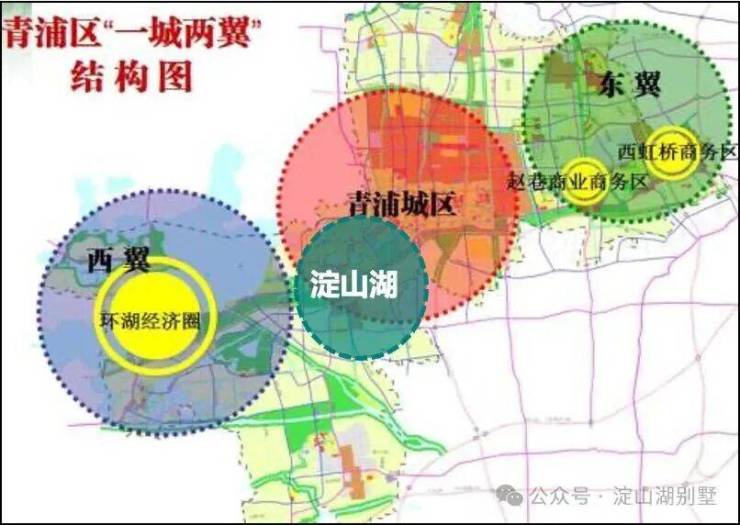 青浦区“一城两翼”规划,淀山湖位于淀山湖新城与环湖经济圈结合处;