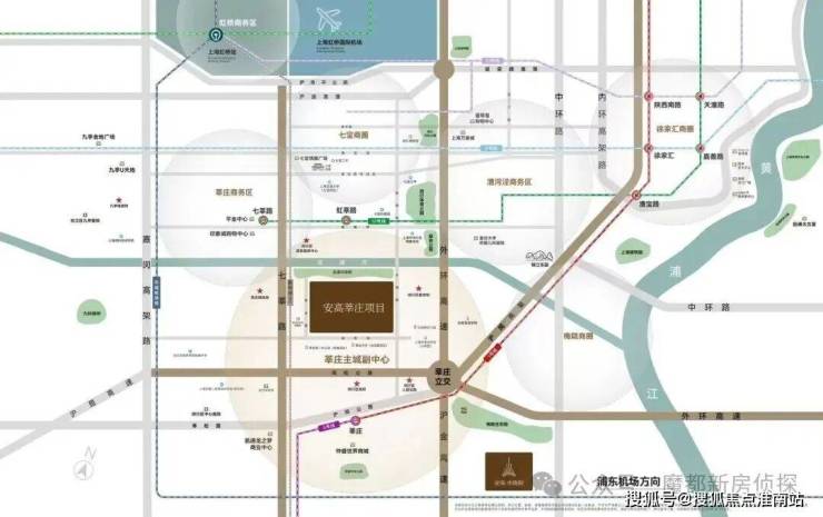 项目位于闵行莘庄板块,步行到1号线、5号线、金山铁路莘庄站的距离大约在1.5km,步行到嘉闵线莘建路站(在建)大约在1.7km。
