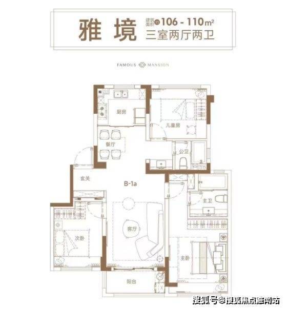 此外,项目还有建面约106-110㎡三房可供选择,户型图如下