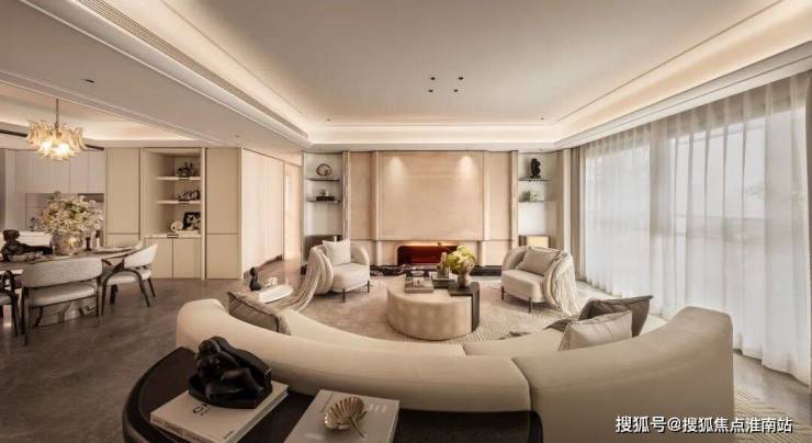 这个户型南向面宽约10米,设计上不走寻常路,打造环岛式侧厅,侧厅面宽近6米,联动同面宽多变阳台,形成约35㎡的开放式社交核心场域。因为是边套,所以既拥揽内庭院园林的全景视野,又为家庭聚会与日常互动延展出阔绰从容的空间,尽彰大宅气度与生活温度。