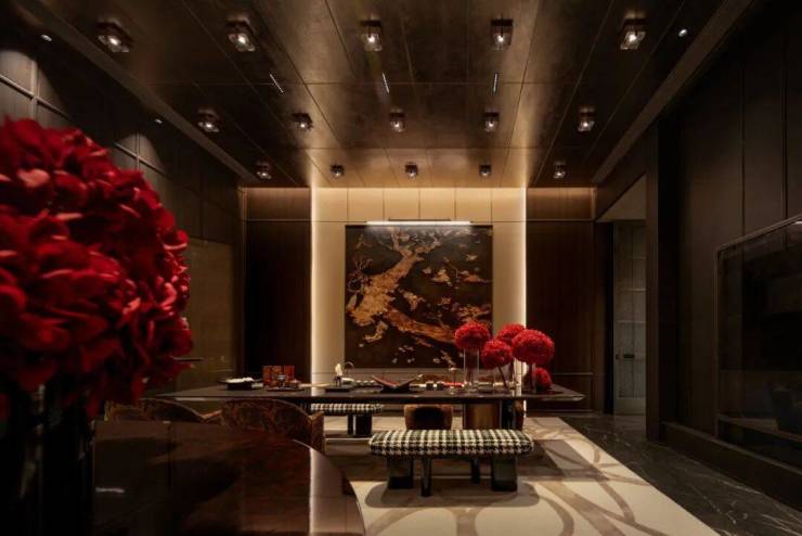 中间套的客餐厅更是达到约100㎡,一张12人的大圆桌也有充足的空间优雅转身。周末约上好友来聚会,给主人赚够了颜面。
