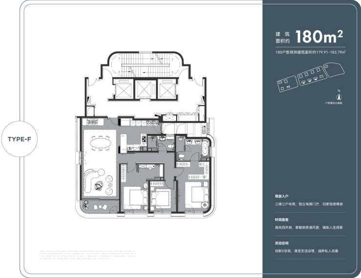 约180㎡三居:全明格局,主卧套间,适合核心家庭