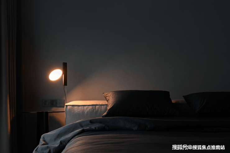 从客厅行至卧室,光线也由明转暗,携手人们渐入佳境。温暖柔和的光线呈点状晕散,柔顺迂回的线条在暗影中浮现,朦胧暧昧的氛围大面积散开,为夜色中的好时光作陪衬。