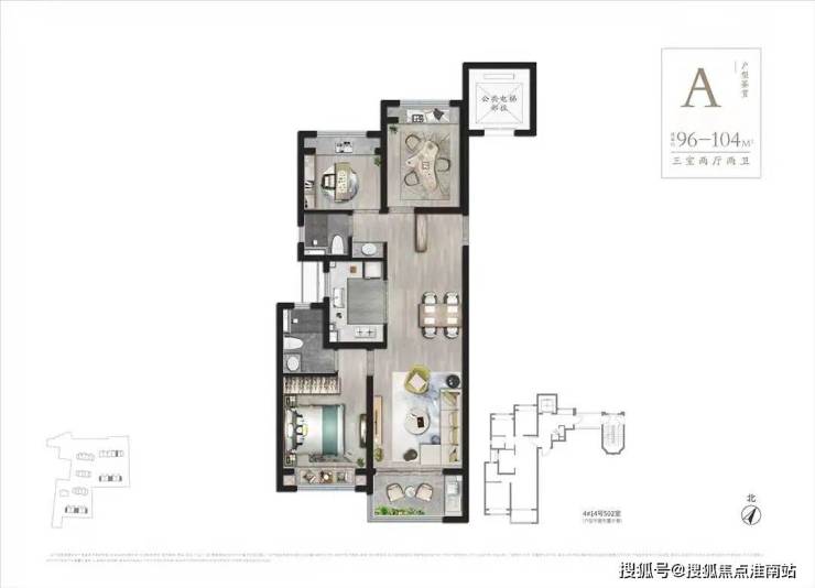 建筑面积约:96-104㎡3房