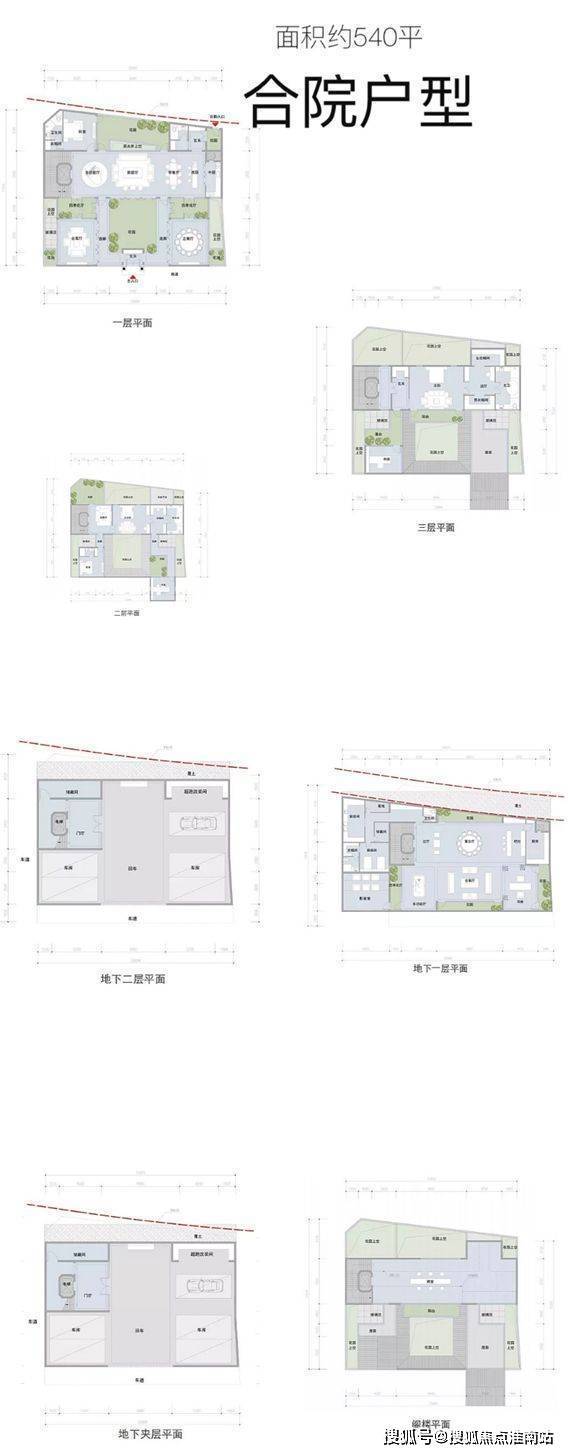 ·风貌联排合院151套(建面约250-1200㎡,主力户型约300-500㎡)