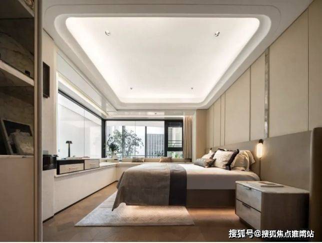 其二,大主卧带约270°飘窗,市面罕见,秒杀同级紧凑四房主卧的舒适度、采光和视野.