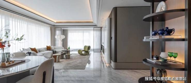 在示范区,挑选了琚宾设计的WAVE1960样板房,来感受一下大师以ARTDECO的对称、几何美学,构建起的摩登艺术空间。