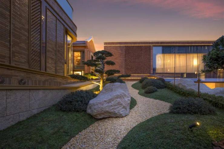 越秀外滩樾的公区庭院非常精致,其精心打造充满禅意的山水庭院。