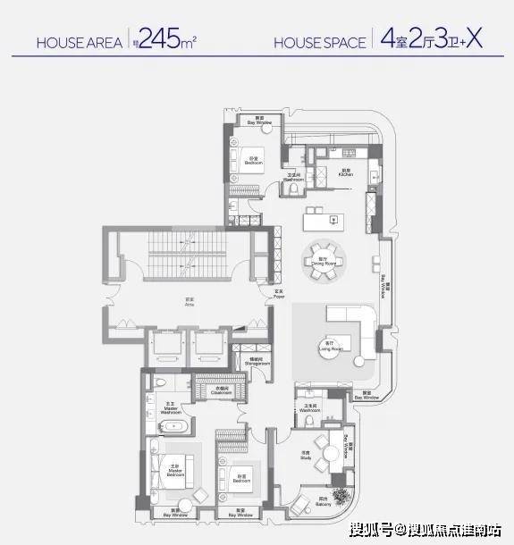 项目建面约245㎡户型过程稿,以开发商实际发布为准