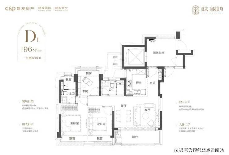 这套建面约103㎡动静分离户型打破常规,兼具三个房间和南向超阔面宽的横厅,以此承载从二人世界到三代同堂的全生命周期需求。