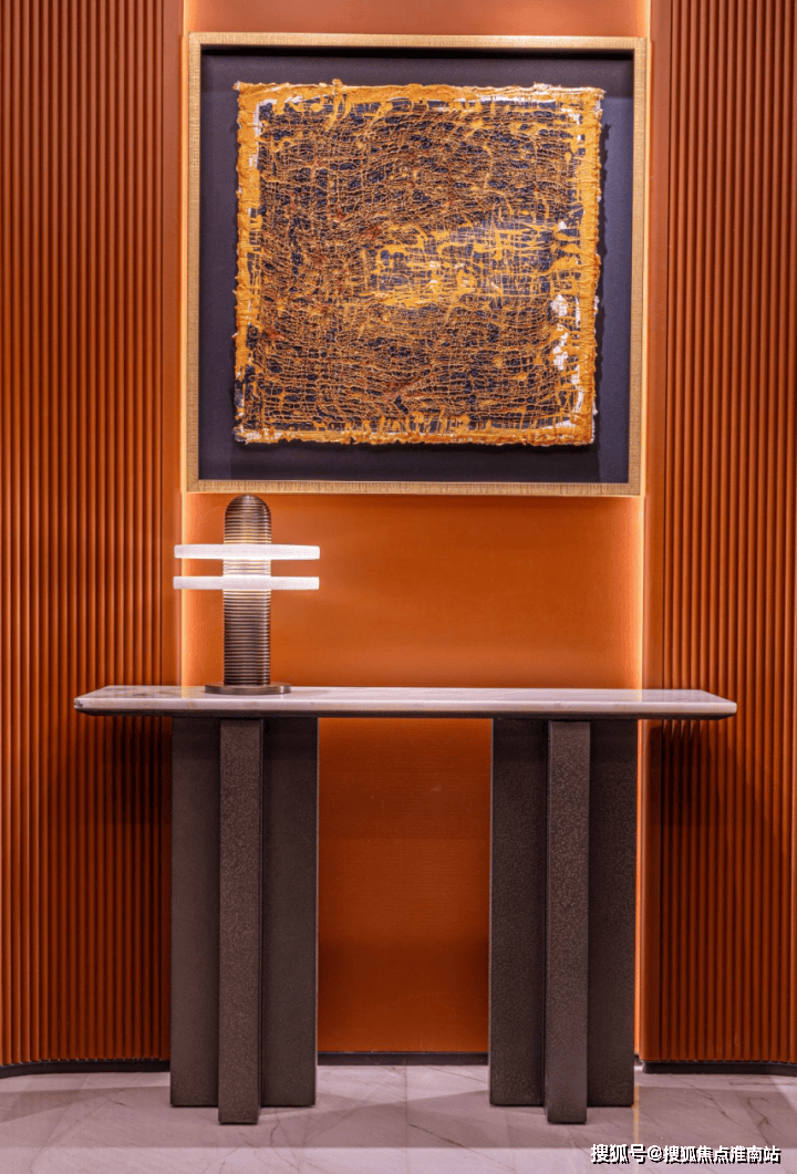 露香园天誉售楼处电话:400-8878-824✔✔✔厅堂右墙上放置一幅超大尺度的以石库门砖墙为元素的肌理挂画《城市的记忆》,在展厅的厅堂空间,设计师则摆放着一座极具雕塑感的法国ARTDECO羊皮纸拂面工艺所制作的圆桌,左侧的走廊选用艺术家高级定制的瓷片水墨装置,呈现露香园四宝“顾振海墨”的人文气息,展现出露香园独特的、高级的美学品位。