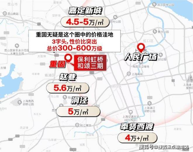 若以市中心为圆心,重固与赵巷、洞泾处于同一半径范围内,但后者房价已达5-5.6万/㎡,而重固仅3字头。