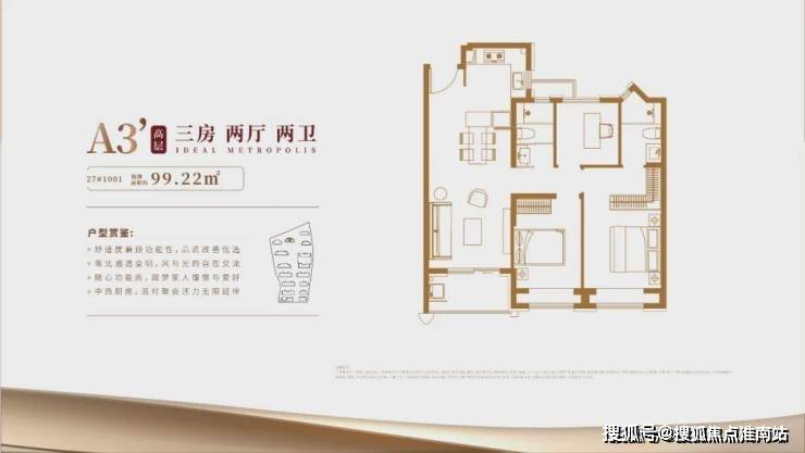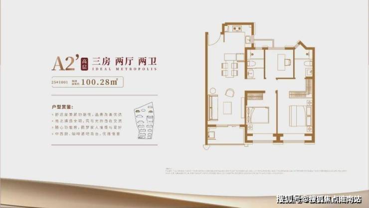 具体细节方面,项目目前只有一个建面约100㎡三房的样板间,带软装后面宽约3.3米,吊顶后层高约2.73米。