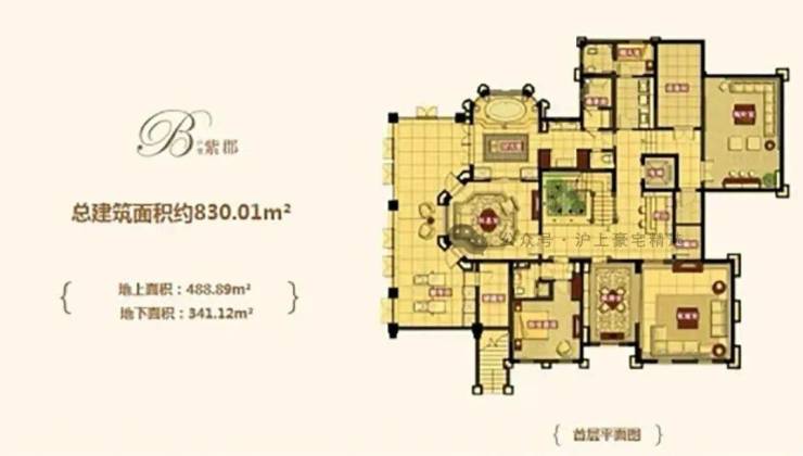 B 户型(紫郡):建面约830㎡,4 房 3 厅 6 卫,1.5-1.7 亿