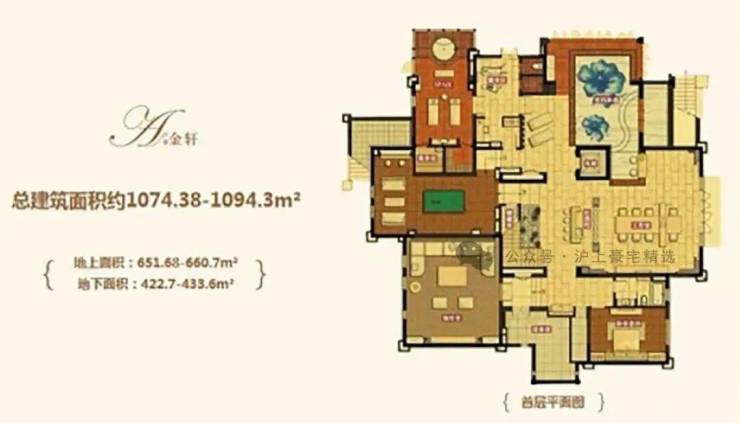 A 户型(御品):建面约1088㎡,5 房 4 厅 8 卫,1.8-1.95 亿