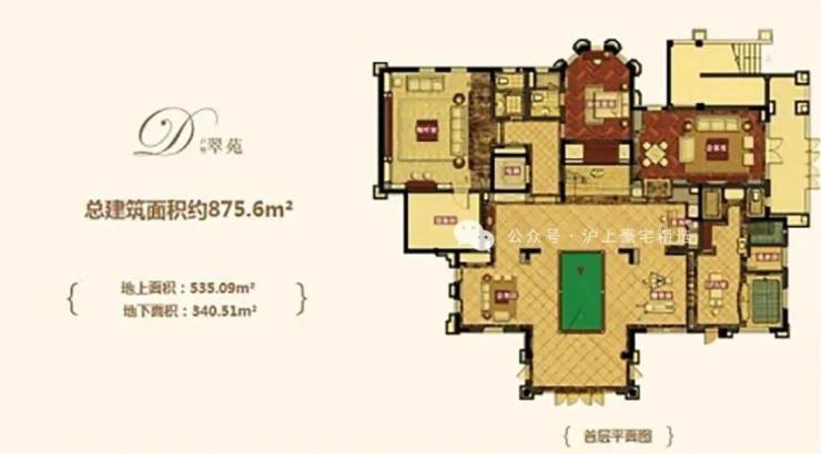 D 户型(翠苑):建面约875㎡,4 房 4 厅 7 卫,1.7-1.8 亿