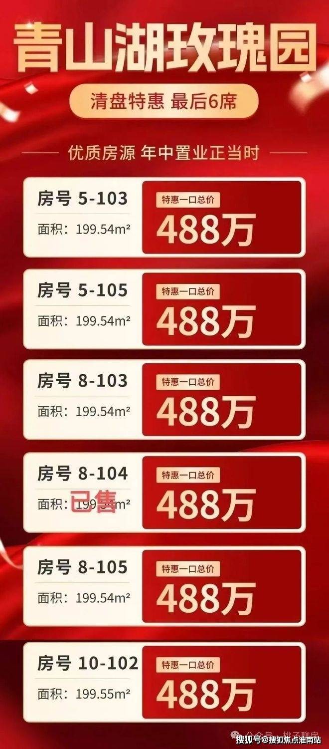 青山湖玫瑰园、最后5套排屋一口价488万、约200方排屋现房,车位3.6万/个,拼手速