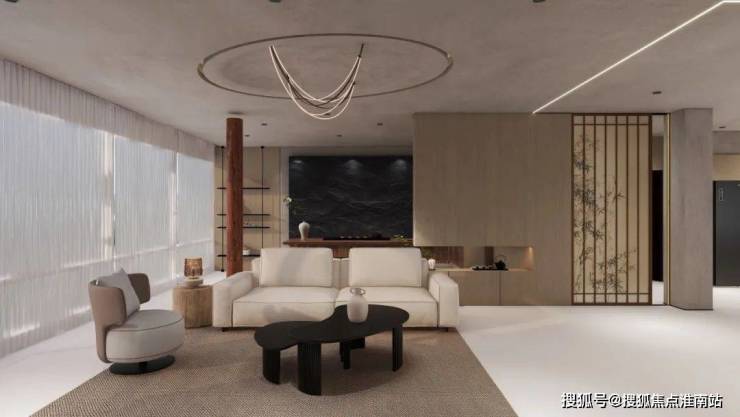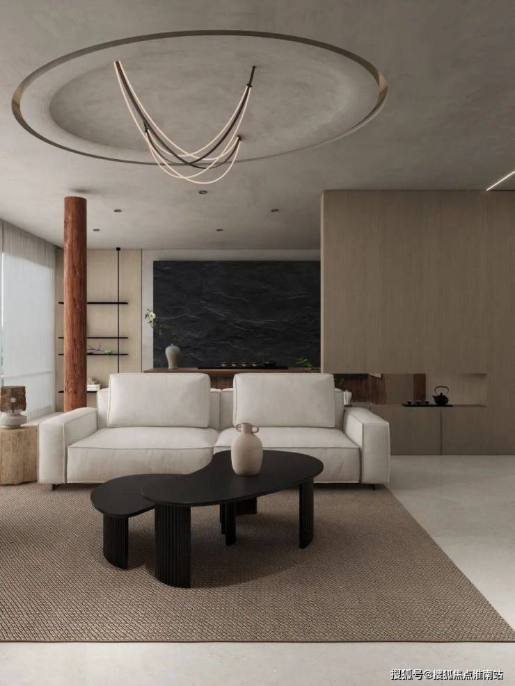 地毯和黑杉茶几带来层次美感