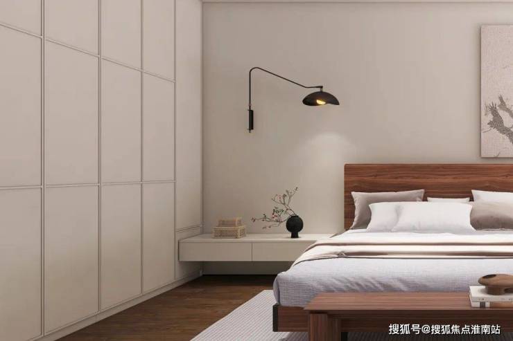 床头柜配合床一起打造成悬浮式