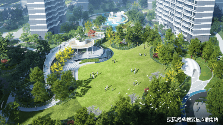 携手集塔景观以超10万方景观绿化打造超大尺度景观园林,通过一环、一厅、双门头、五大功能主题组团的布局,构建林下生态宜居公园社区。
