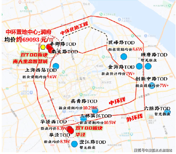 上海中环沿线TOD新盘的价格门槛基本来到了8w元/m²以上,即便外环也要7w/m²以上