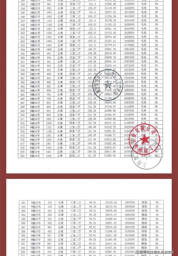 项目一房一价表