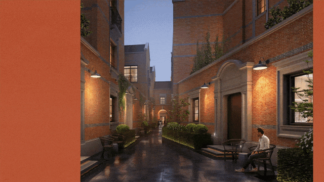 外立面采用保加利亚进口沉香米黄石材与巴西奢石波多尔红,原汁原味复刻红陶砖镶嵌工艺,巷道尺度既亲密又不失格调,让海派烟火气与历史肌理完美重现。