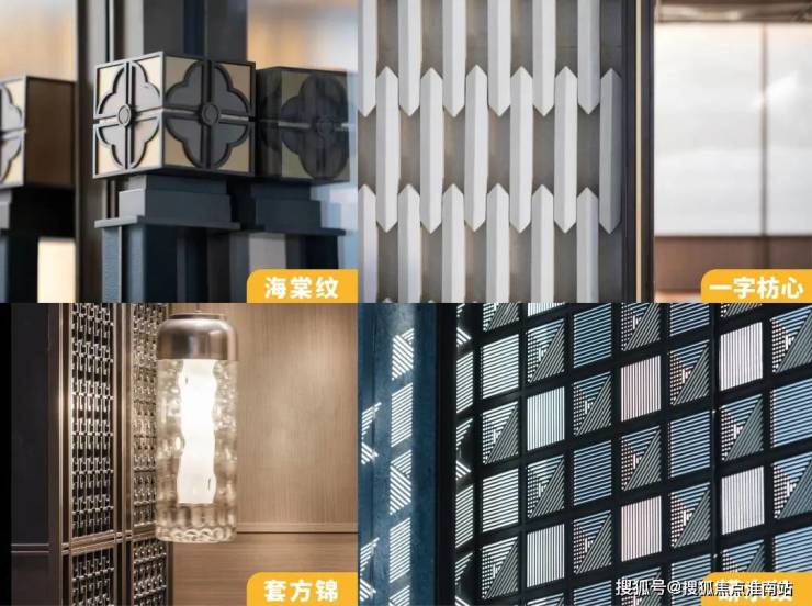 这样的细节工艺,在小区内部不胜枚举,蟒水纹、一字枋心、海棠纹把手、套方锦、金属屏风等,就连公区装饰中并不起眼的黄铜构件,上面的纹路都是在高温炉里烧制后,用手工锤一寸一寸敲打出来的…