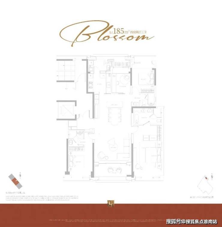 主力户型约228㎡4房两厅三卫 ,面宽达5.6米,配备270°环幕落地窗,客餐厅一体空间约53㎡,主卧套房面积约50㎡(含10㎡衣帽间与15㎡卫浴),完全满足高净值家庭“大空间、强功能”的居住需求。