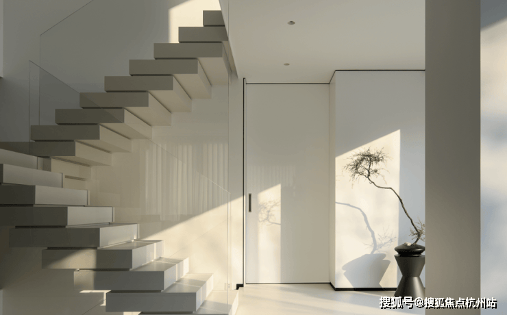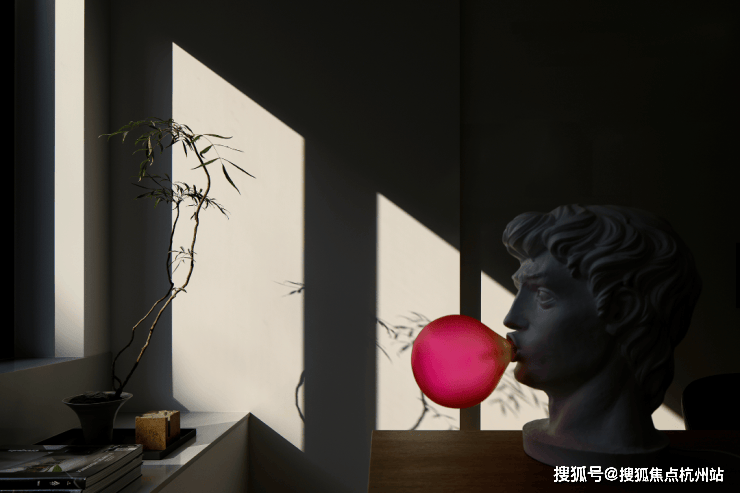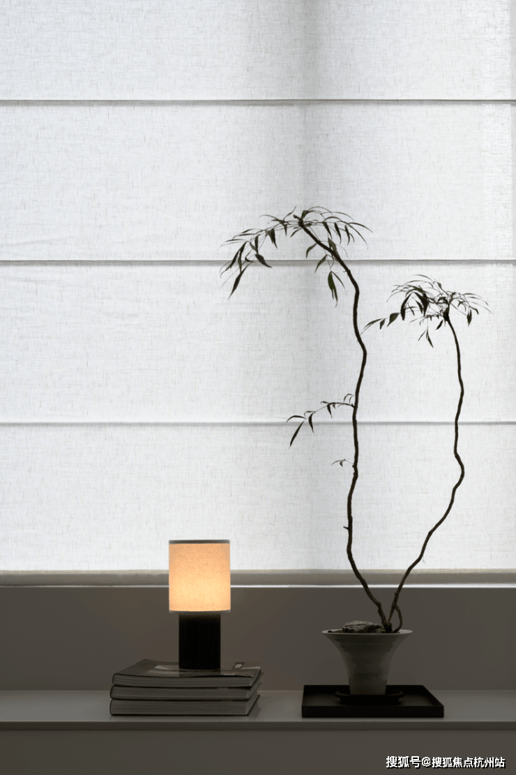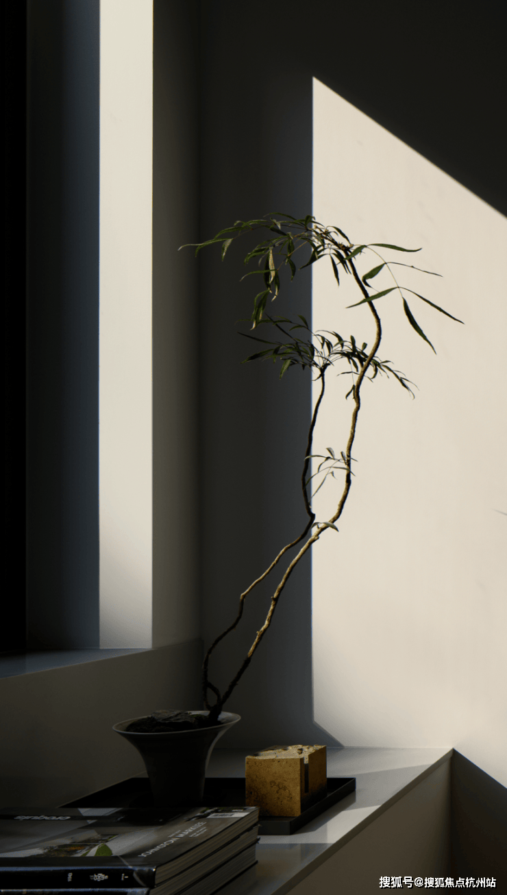 器物、枝叶缔造了虚实相生的意境,在墙面上留下了唯美的“倩影”,进而丰富了空间内在。