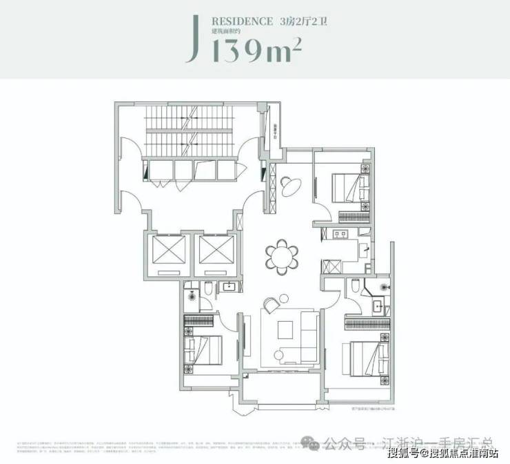 建面约139㎡3房,更是129㎡户型的升级款,保留所有优势的同时,更进行了功能的扩充!