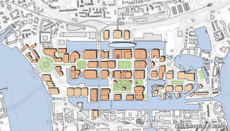 通过金丝雀码头控规图的研究,我们就可以发现,在城市设计上,金丝雀码头巧妙利用了水岸线,打造开放的、吸引人停留的活力水岸,由此打破了传统平面的城市布局,追求三维空间的高效整合。