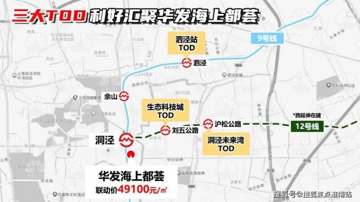 依托12号线西延伸(在建),洞泾迎来双TOD规划——沪松公路站的洞泾未来湾TOD、刘五公路站的生态科技城TOD!(信息来源:《洞泾镇城市数字化转型2023年重点工作安排》)