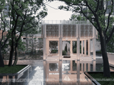 292、效果图:一种表现建筑外立面、小区景观等的平面图片。